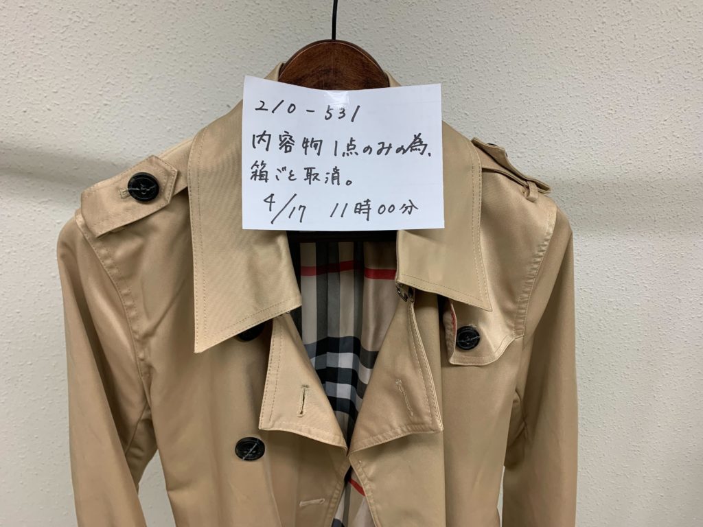 210-531 BURBERRY コート 内容物1点の為、箱ごと取消。
