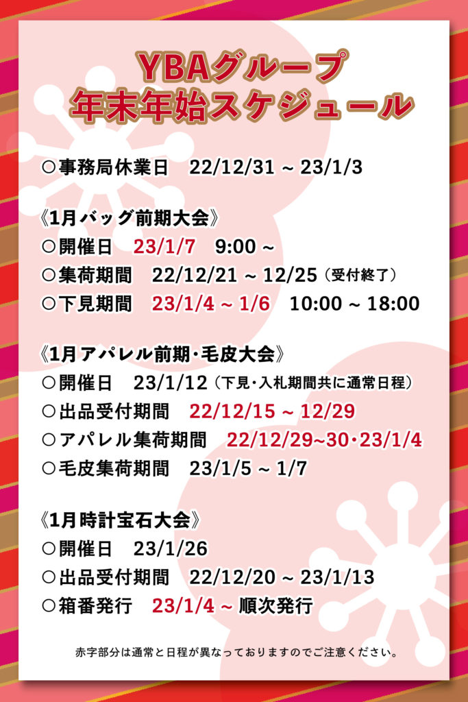 YBAグループ年末年始スケジュール